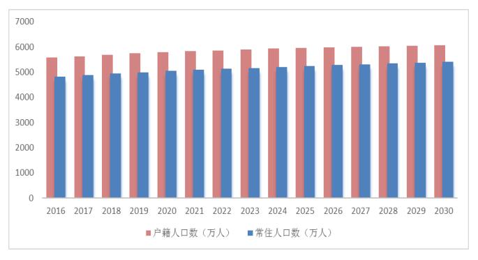 ——人口总量规模适度。一对夫妇可生育两个孩子政策平稳实施,及时根据国家政策取向调整,生育率保持在合理区间。到2020年,预期户籍人口约为5800万人,常住人口约为5030万人。到2030年,预期户籍人口约为6200万人,常住人口约为5600万人。