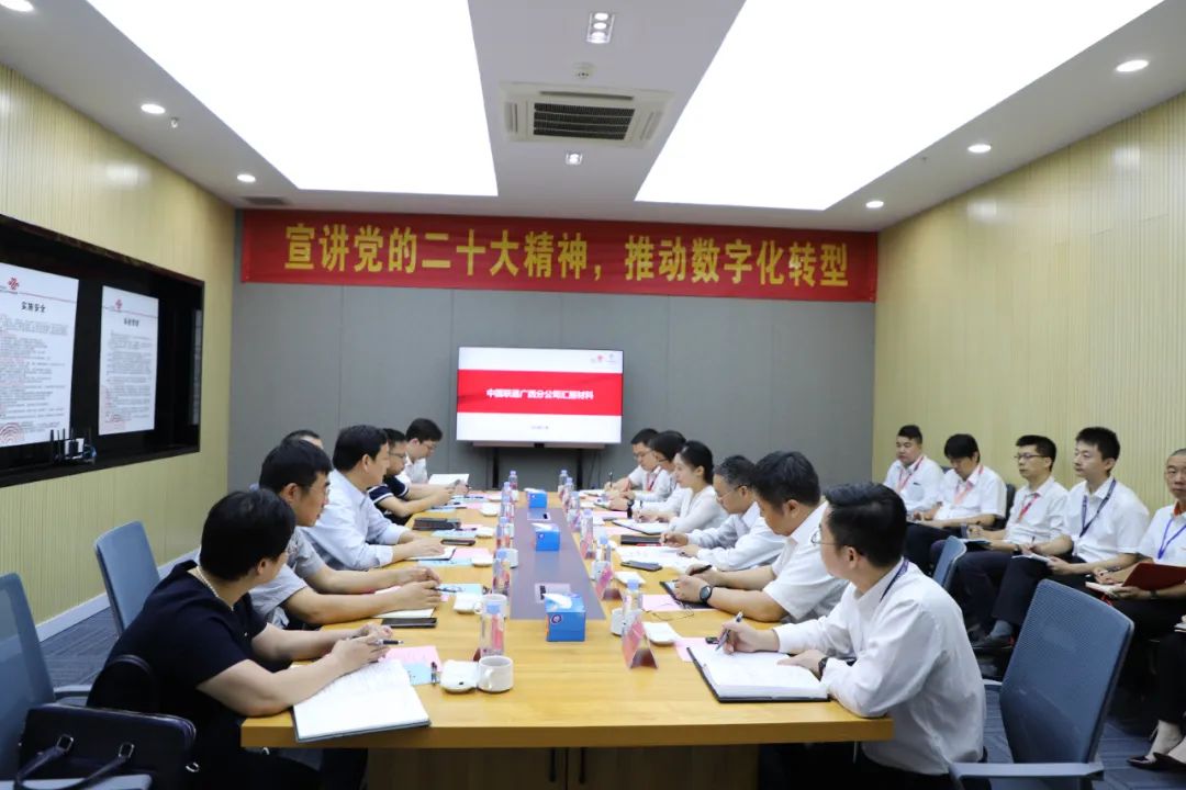11月3日,自治区人民政府副秘书长,自治区大数据发展局党组书记、局长杨绿峰到中国—东盟信息港股份有限公司、中国联通广西分公司、华为技术有限公司广西代表处、中兴通讯股份有限公司广西分公司宣讲党的二十大精神,调研数字经济企业赋能传统产业,助力广西数字化转型情况。局党组成员、副局长何予平,局党组成员,自治区信息中心党委书记、主任周飞分别参加相关企业调研。