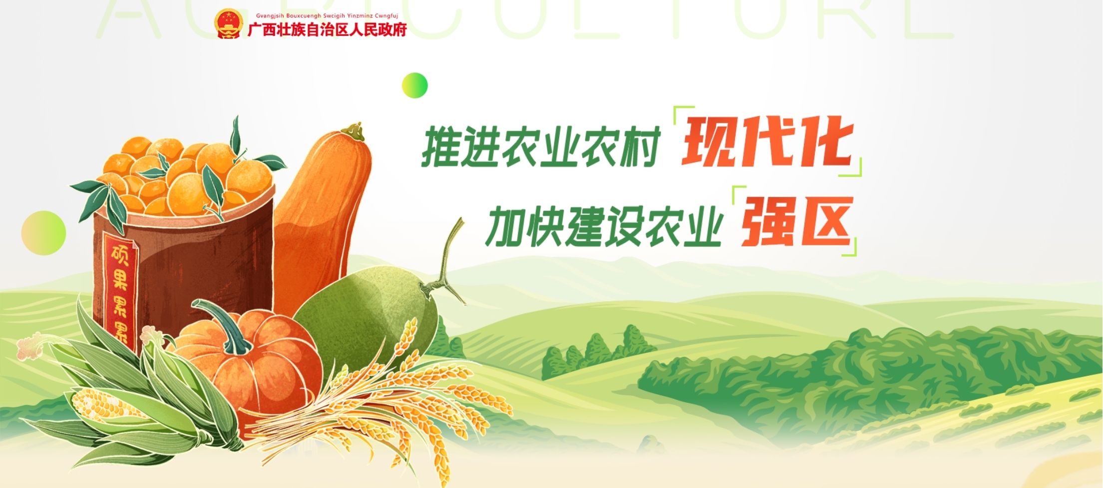 18.加快发展现代特色农业。大力发展设施蔬菜,稳定生猪生产,推进畜禽标准化规模养殖,建设现代渔业集聚区和渔港经济区,发展海水设施养殖和淡水集约化养殖,力争蔬菜产量4500万吨以上、猪牛羊禽肉产量增长2%以上、水产品产量增长3%左右。稳定糖料蔗种植面积。实施水果产业高质量发展行动和千亿元茶产业行动。推进现代林业产业示范区建设,启动万亿林业产业三年行动。促进油茶产业、林下经济扩面提质增效和茧丝绸全产业链发展。探索开展秸秆集中收集处理利用试点。实施农业品牌精品培育工程,加快建设名优特色农业产业基地,培优壮大“桂字号”农业品牌,促进“桂品出乡”提质扩容。盘活供销合作社系统资源,发挥农村基层经营服务网络平台作用。推动一二三产融合发展,开展农村产业融合发展示范园创建。继续整县推进农产品产地冷藏保鲜设施建设,大力发展农产品加工和“桂味”预制菜产业。强化农业科技和装备支撑,推进种业振兴。发展农业适度规模经营,新增70家自治区级农业产业化重点龙头企业。(自治区农业农村厅牵头;自治区科技厅、工业和信息化厅、自然资源厅、商务厅、市场监管局、林业局、乡村振兴局、供销社、农机中心、糖业发展办等按职责分工负责,12月底前完成当年任务)