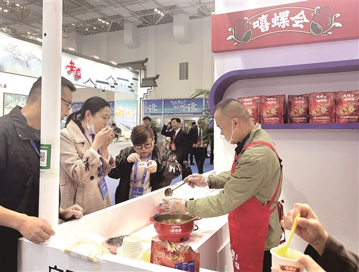 在柳州市贸促会的推动下,广西螺蛳粉生产企业参加2023中国国际地理标志品牌合作大会,现煮的螺蛳粉深受欢迎。