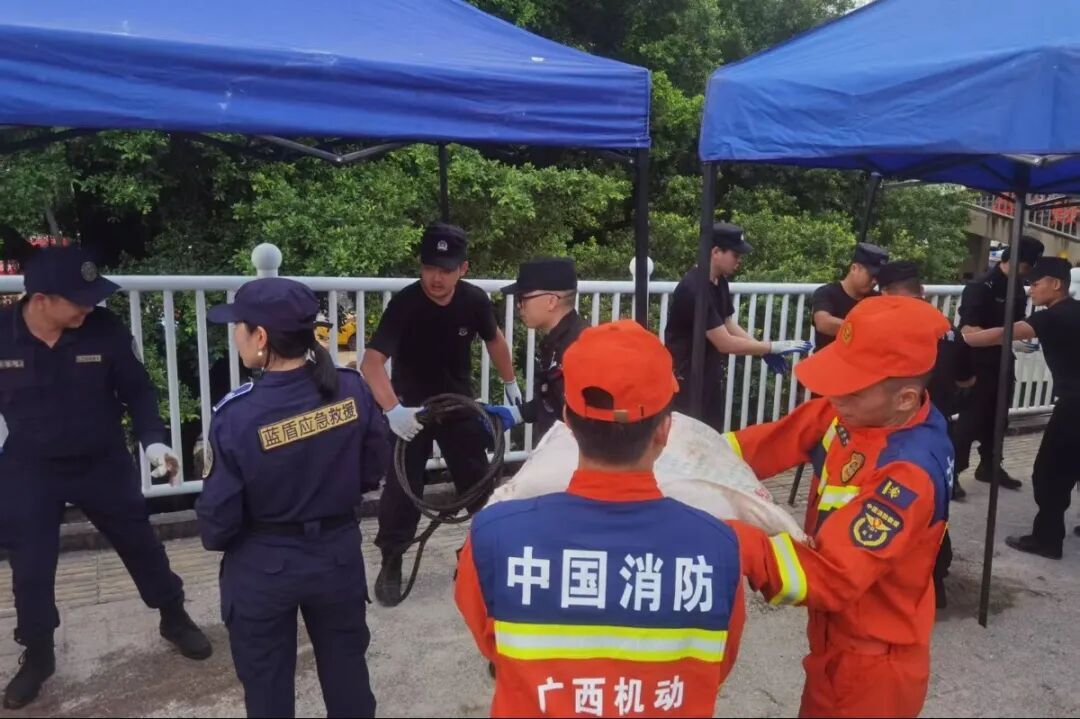 “险情就是命令!” 应急、住建、水利、交通、公安、消防等多部门及安能集团迅速组织精干力量赶赴现场,临时指挥部在夜色中迅速成立,1400多名抢险人员迅速集结。堤内洪水滔天,堤外万家灯火,而堤上橙色救援服、蓝色执法服、白色医护服在灯光下交织,成了邕江边最安心的色彩。