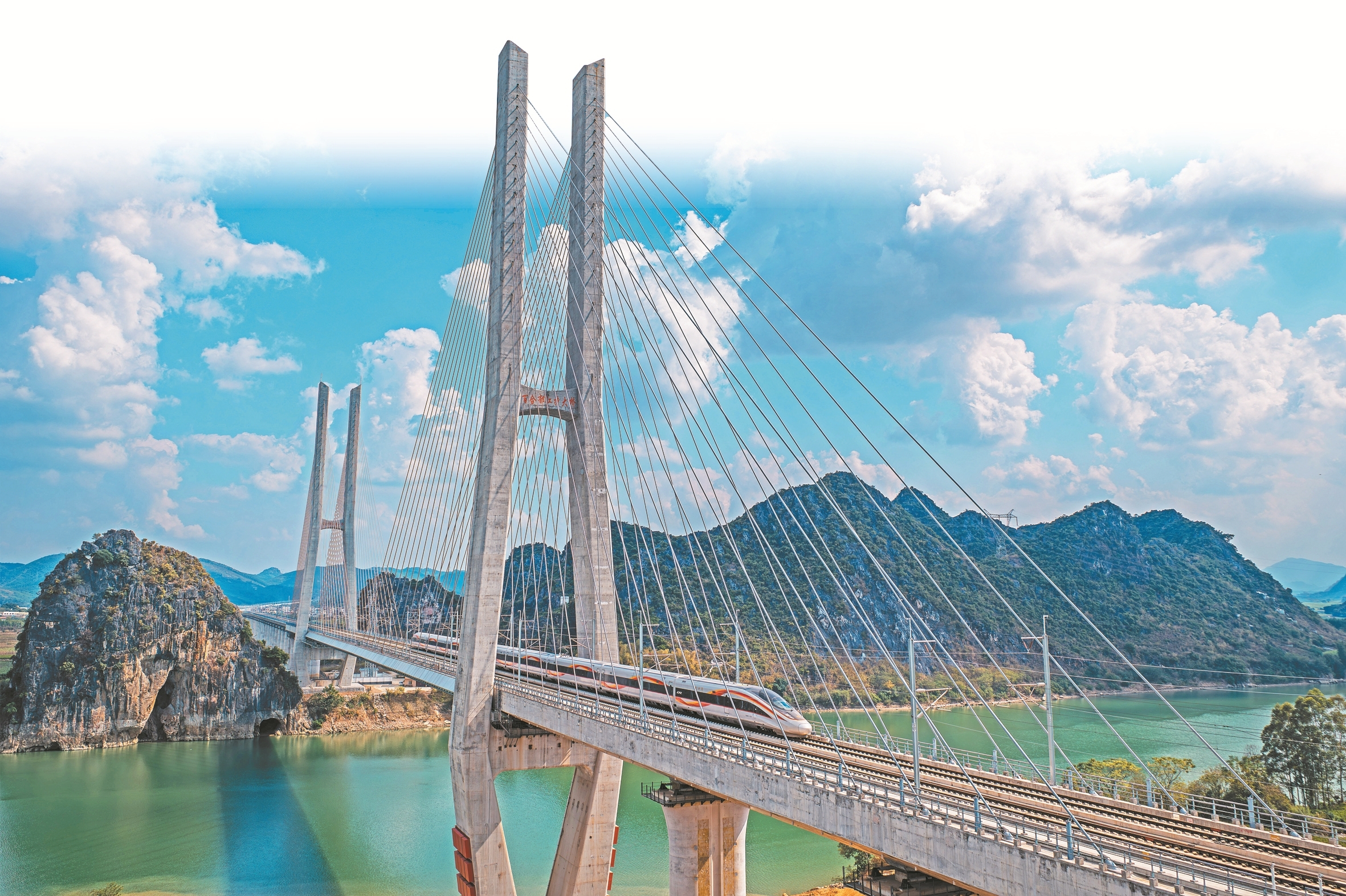 动车组列车奔驰在南珠高铁南玉段百合郁江铁路大桥上。 施少明 摄