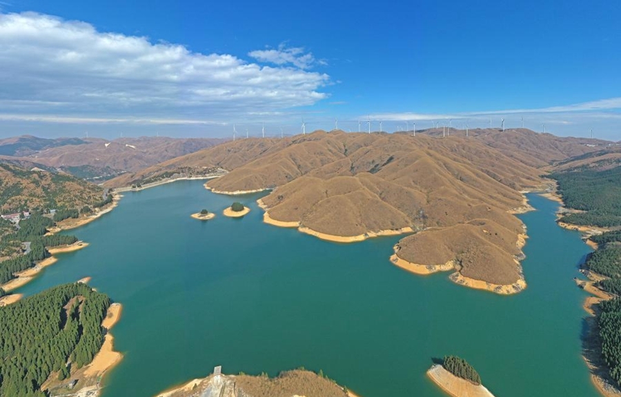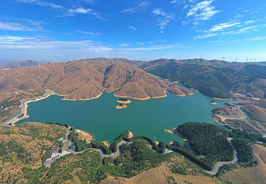 冬日,位于高山上的广西全州县天湖国家湿地公园湖水清幽,壮观美丽。(周华)