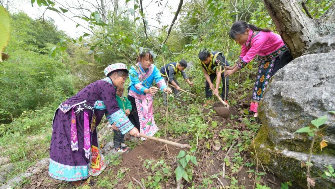 仡佬族人民到山上植树造林(资料图片)。杨丽萍 摄