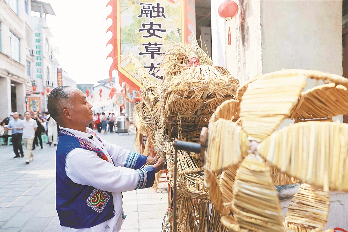 当天,柳州市第七届文化旅游产业发展大会在融安举办。长安古镇骑楼街上,人潮涌动,舞草龙、长安芙蓉酥、烧炙、长安滤粉等一系列非遗项目和美食,唤醒着人们的时光记忆,也激励着人们对优秀传统文化的自信和期待。