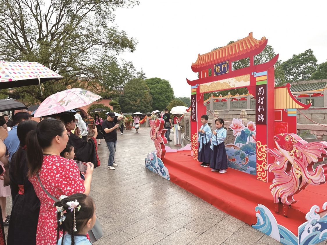 不少家长带着孩子前来孔庙参加活动。晏明珠 摄