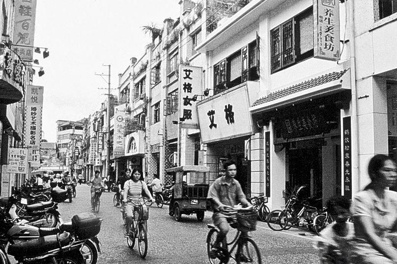 清晨的仓西门码头(今民生码头),满载木材、布匹和农副产品的货船络绎不绝。穿过仓西门,骑楼林立的民生路、兴宁路和解放路开启一天的忙碌。
