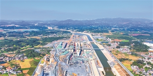 图为平陆运河企石枢纽施工现场。黄远来 黎鑫 摄