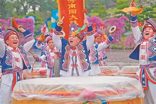 ③4月17日至20日,南宁园博园开展“多彩三月三 民俗乐园博”活动,推出民俗快闪巡游、山水对歌·刘三姐传情、民族体育趣味体验、民俗市集等项目,为市民和游客打造一场可观、可玩、可品、可拍的文化盛宴。周军 摄