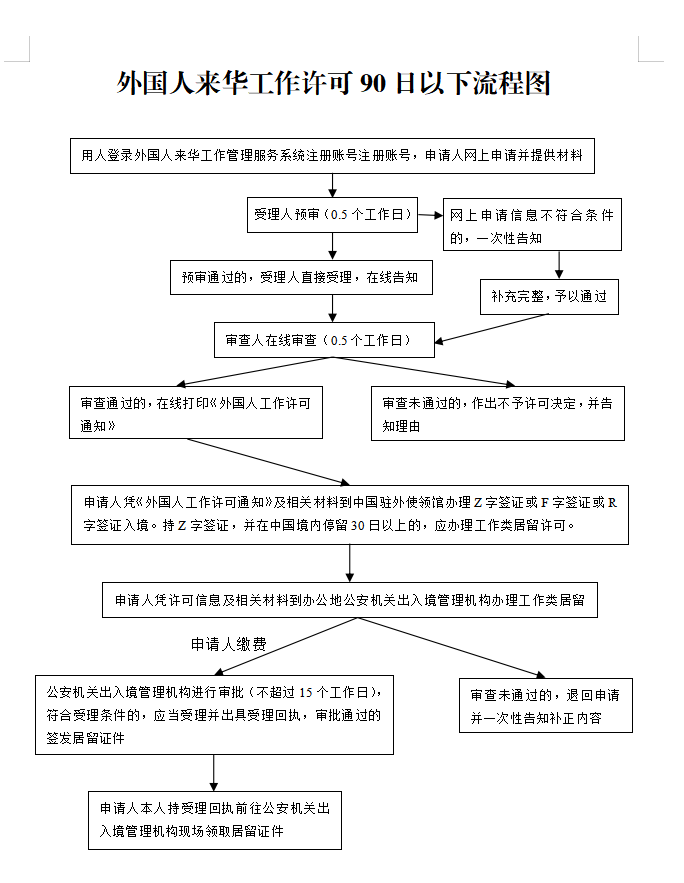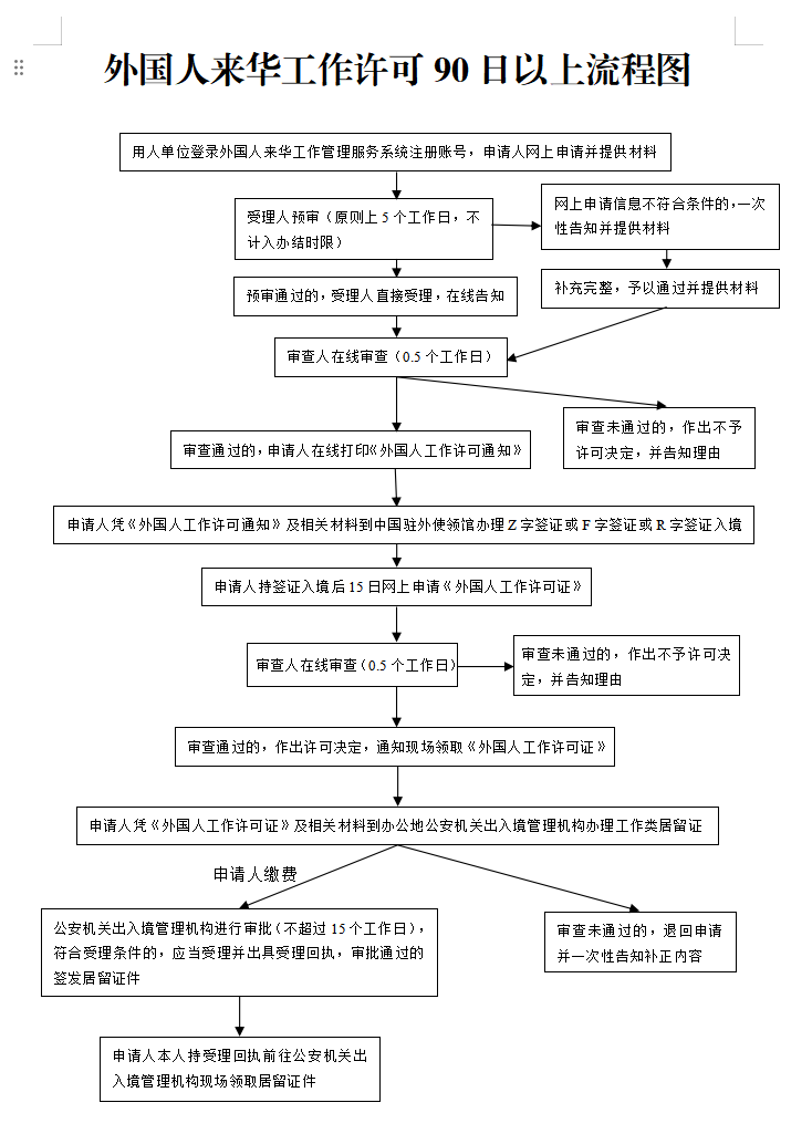 一、申请外国人来华工作许可(来华工作90日以上的,不含90日)