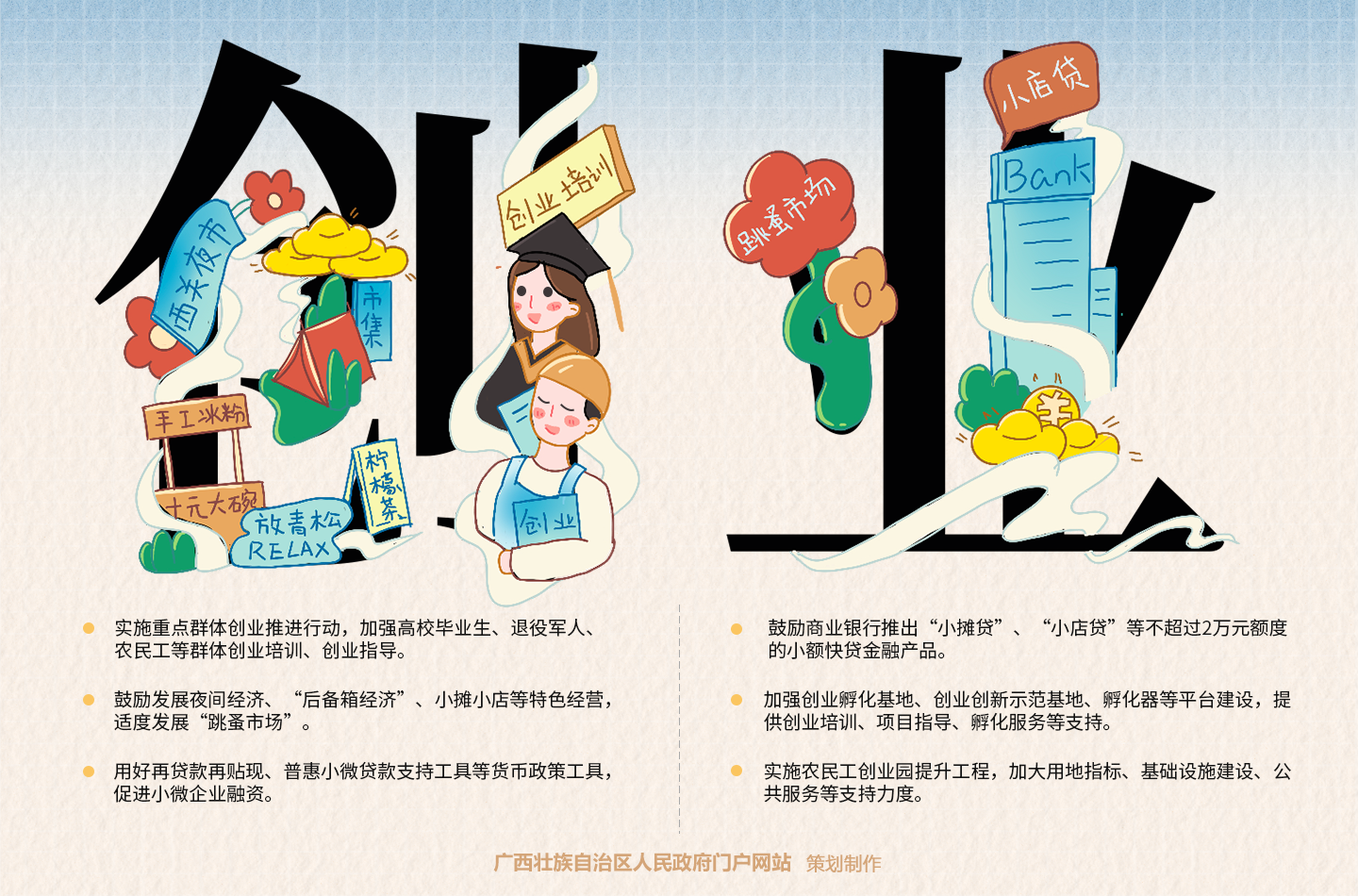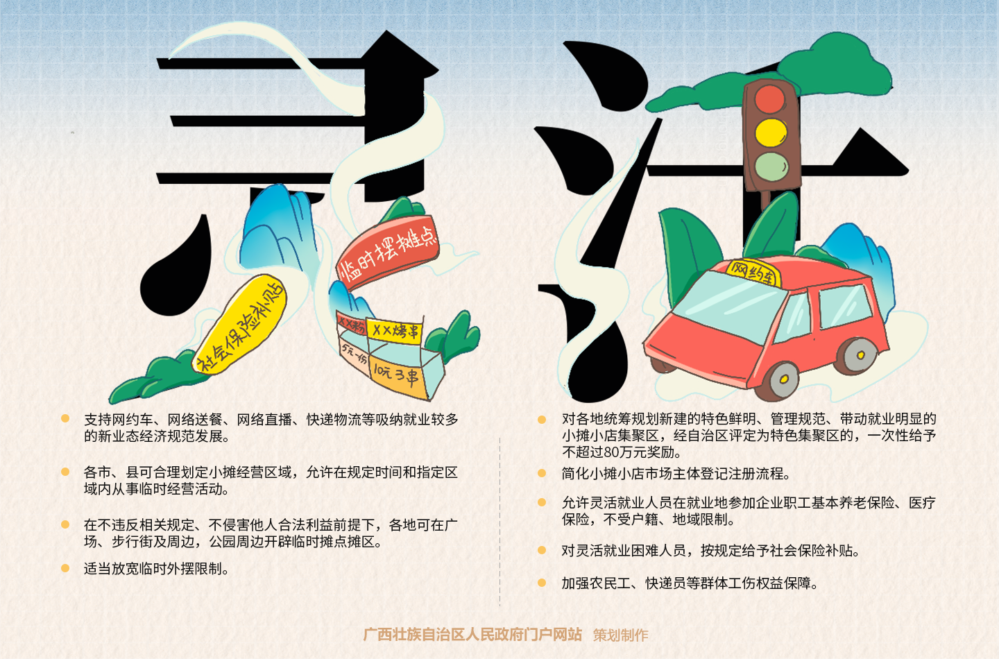 漫画解读:广西壮族自治区人民政府办公厅印发关于进一步促进充分就业增强市场活力若干措施的通知