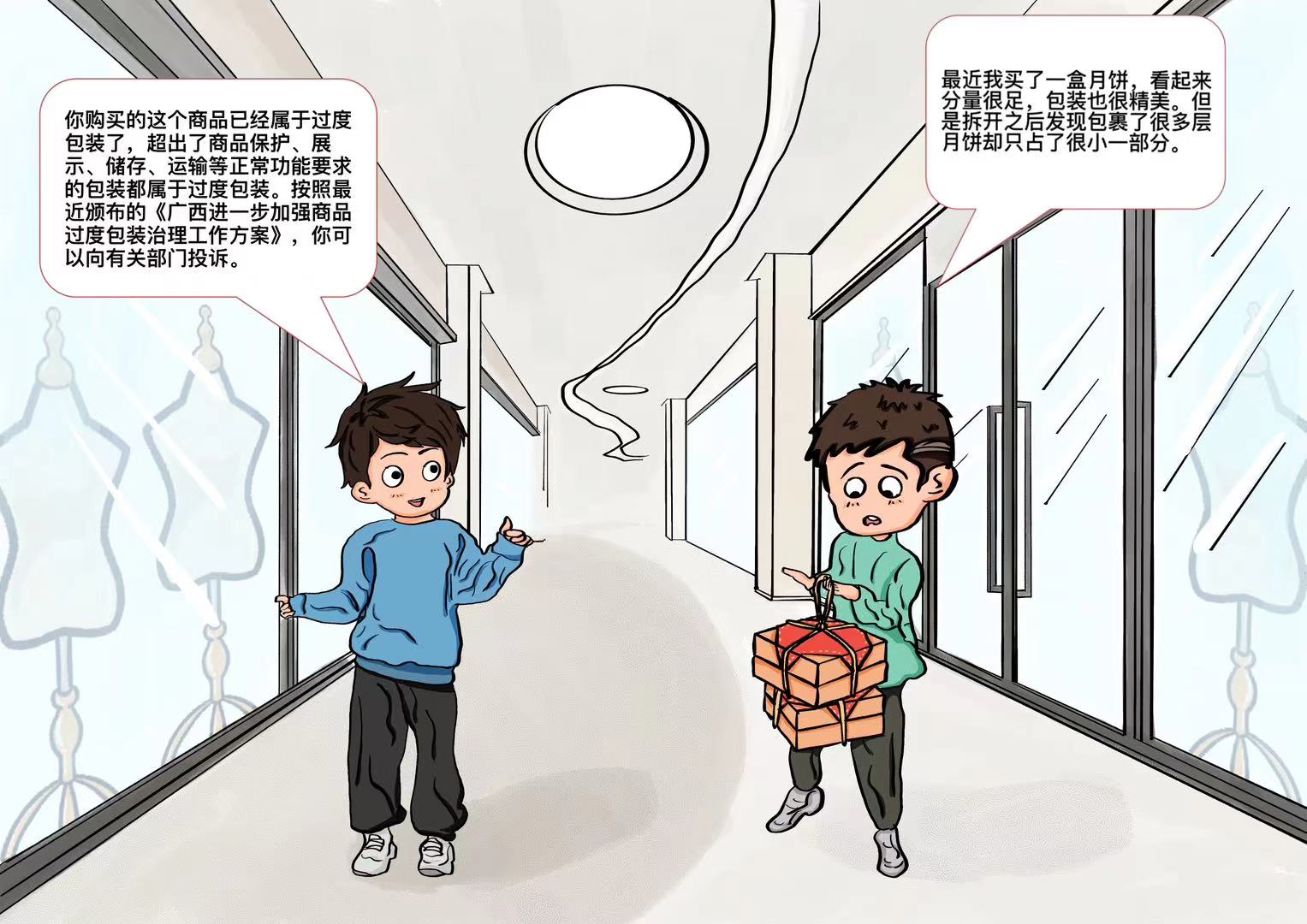 政策漫画:广西进一步加强商品过度包装治理工作方案
