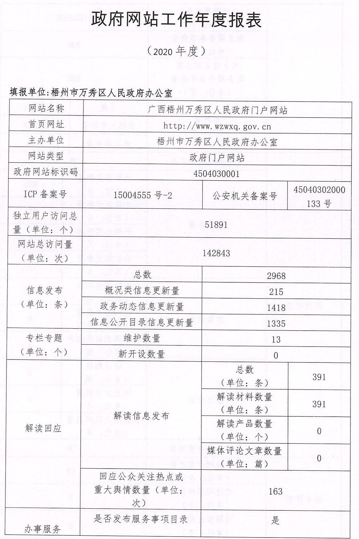广西梧州市万秀区政府网站2020年政府网站工作年度报表