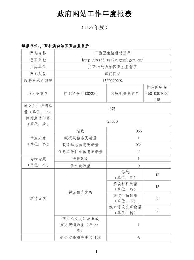 广西壮族自治区卫生监督所2020年政府网站工作年度报表