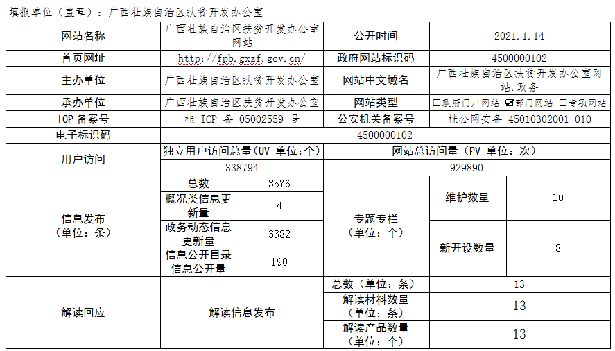 广西壮族自治区扶贫开发办公室2020年政府网站工作年度报表