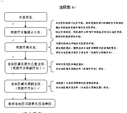 启动自治区Ⅲ级救灾应急响应程序见流程图4: