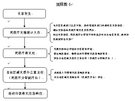 启动自治区Ⅳ级救灾应急响应程序见流程图5: