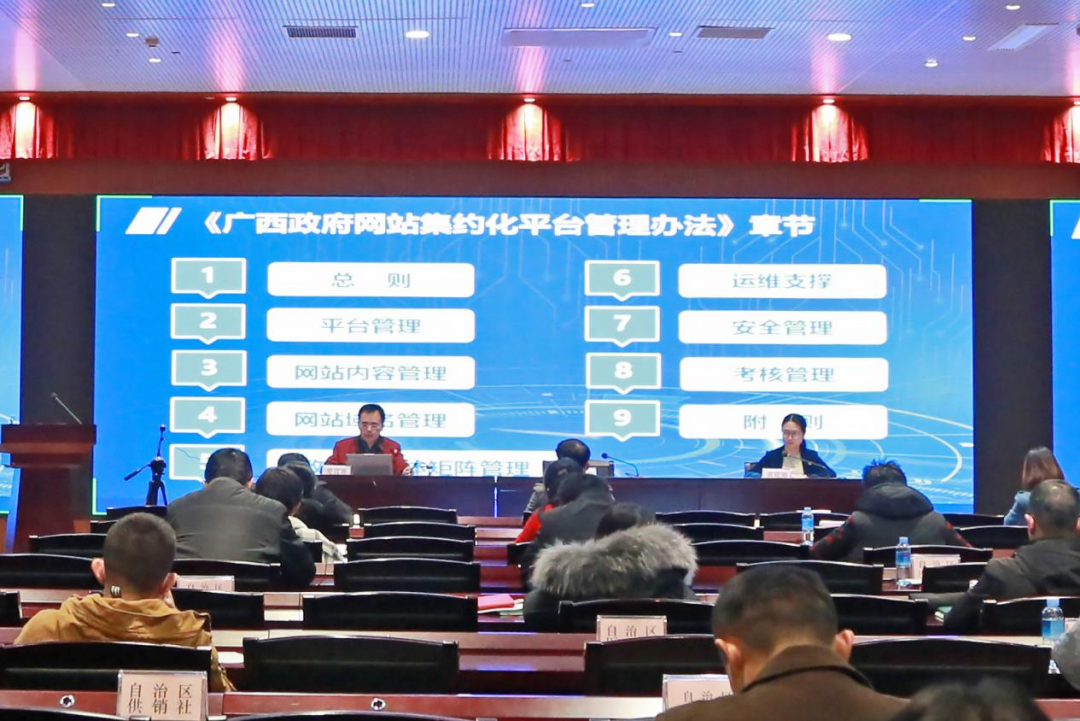 会议当天,自治区大数据发展局还开展解读《广西政府网站集约化平台管理办法(试行)》培训会,重点解读平台管理、网站内容管理、政务新媒体矩阵管理等内容,结合典型案例具体分析,旨在进一步提高网站和政务新媒体管理工作相关业务人员的思想认识,提升业务能力,推动集约化平台、网站和政务新媒体安全平稳运行,助力提升人民群众对政府网站和政务新媒体的满意度。