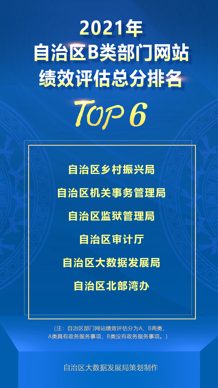 2021年自治区B类部门网站绩效评估总分排名TOP6