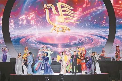 深度融合“经典”与“时尚”元素,是本次活动最耀眼的亮点。活动的三个篇章,通过“唤醒—唤新—唤彩”三重叙事,将民歌演绎与国潮大秀、非遗技艺、现代舞、虚拟主播等多元形式巧妙结合,重新定义“民歌”内涵:第一篇章“大地飞歌 经典流传”中,《山歌好比春江水》《阿里山的姑娘》等经典旋律一响起,便勾起人们的美好回忆;第二篇章“民歌潮音 山水秀场”里,壮语版《藤缠树》等节目将经典民歌与虚拟主播时尚元素创新融合,新编歌曲《我在南宁等你来》以年轻人喜爱的方式生动展现南宁风貌;第三篇章“民歌无界 世界共享”中,中外歌手同台献艺,外语歌曲与广西民歌相互辉映,尽显民歌跨越国界的独特魅力。“整场演出歌曲的旋律非常欢快活泼,既有民族特点,又融入许多流行时尚元素,非常符合南宁这座包容城市的形象。”歌手杨西音子说。