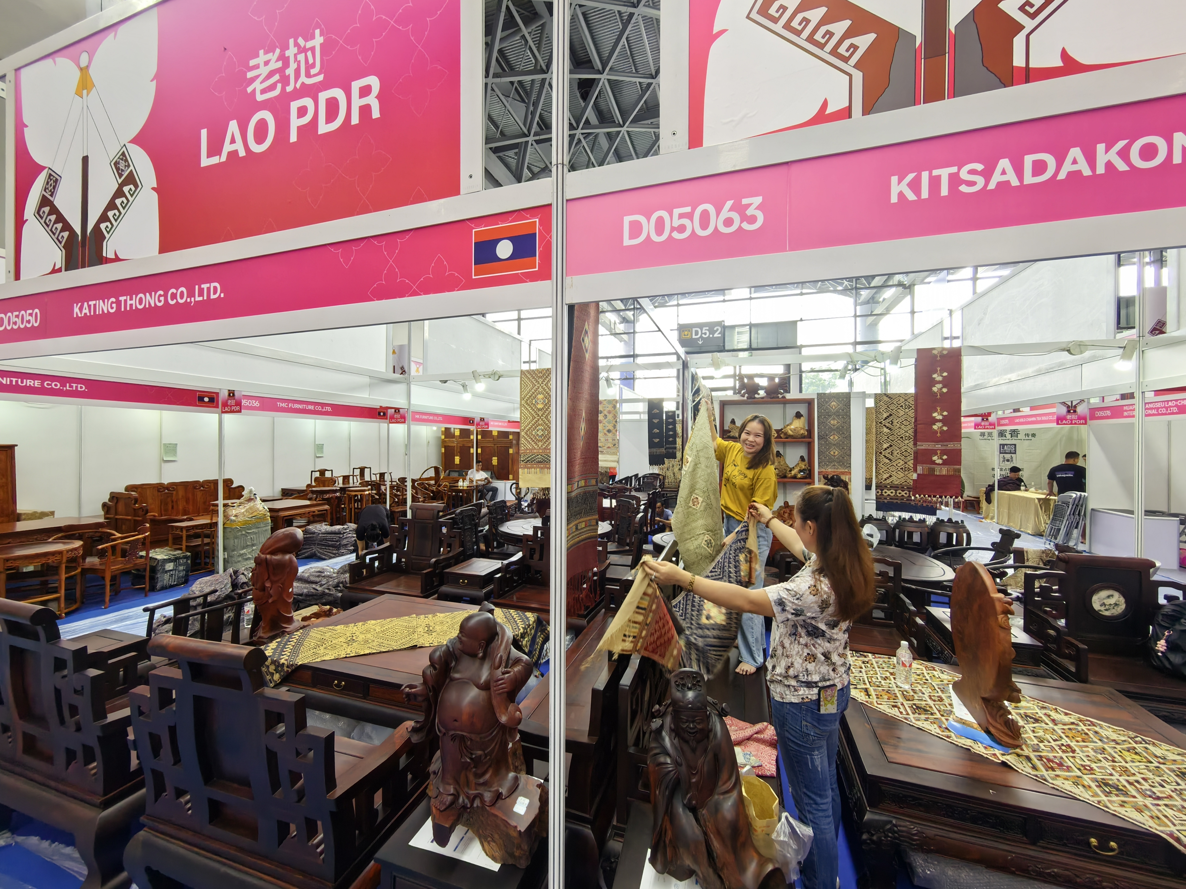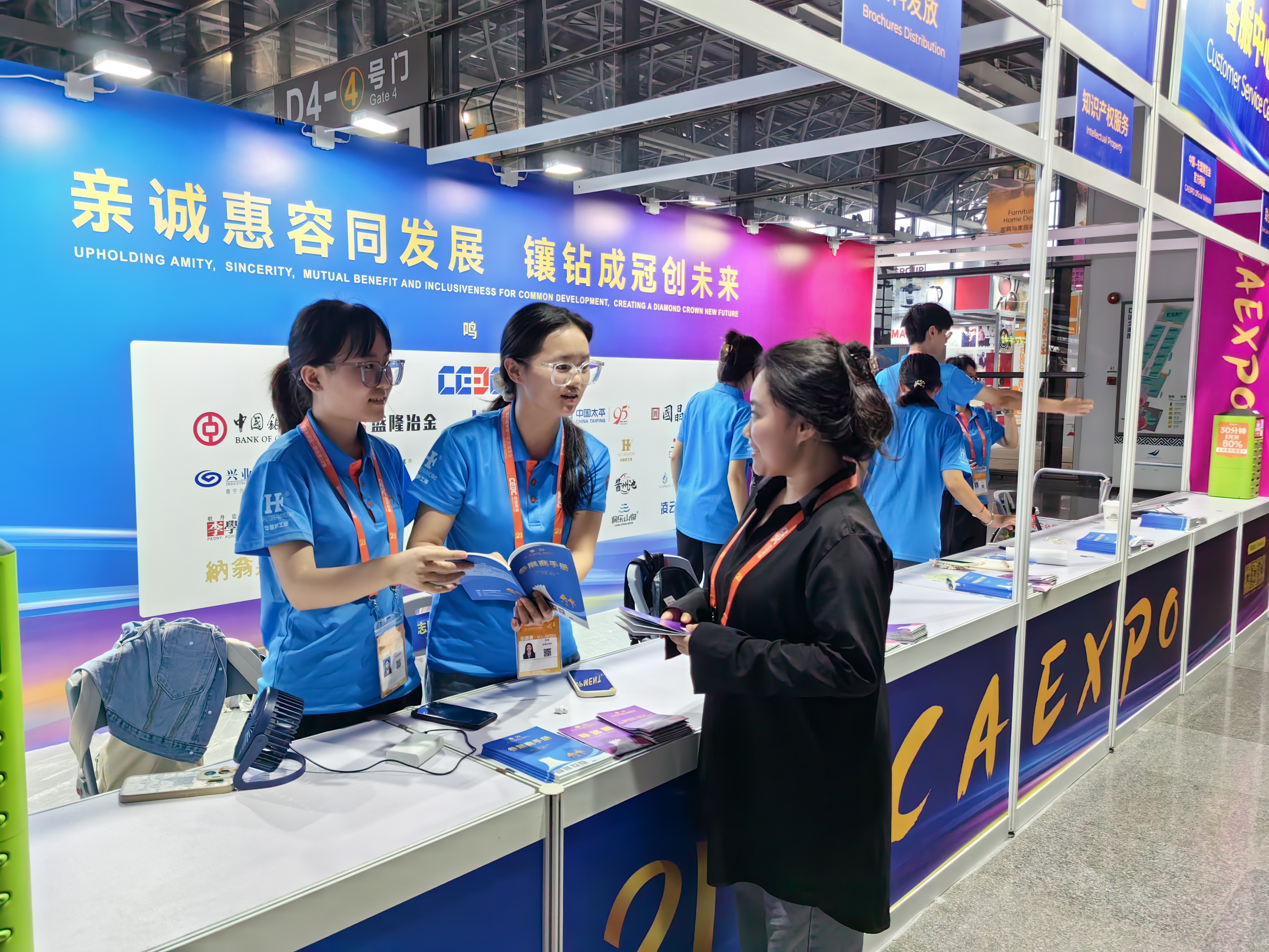 东博会吉祥物“合合”“美美”热情迎接八方宾客。