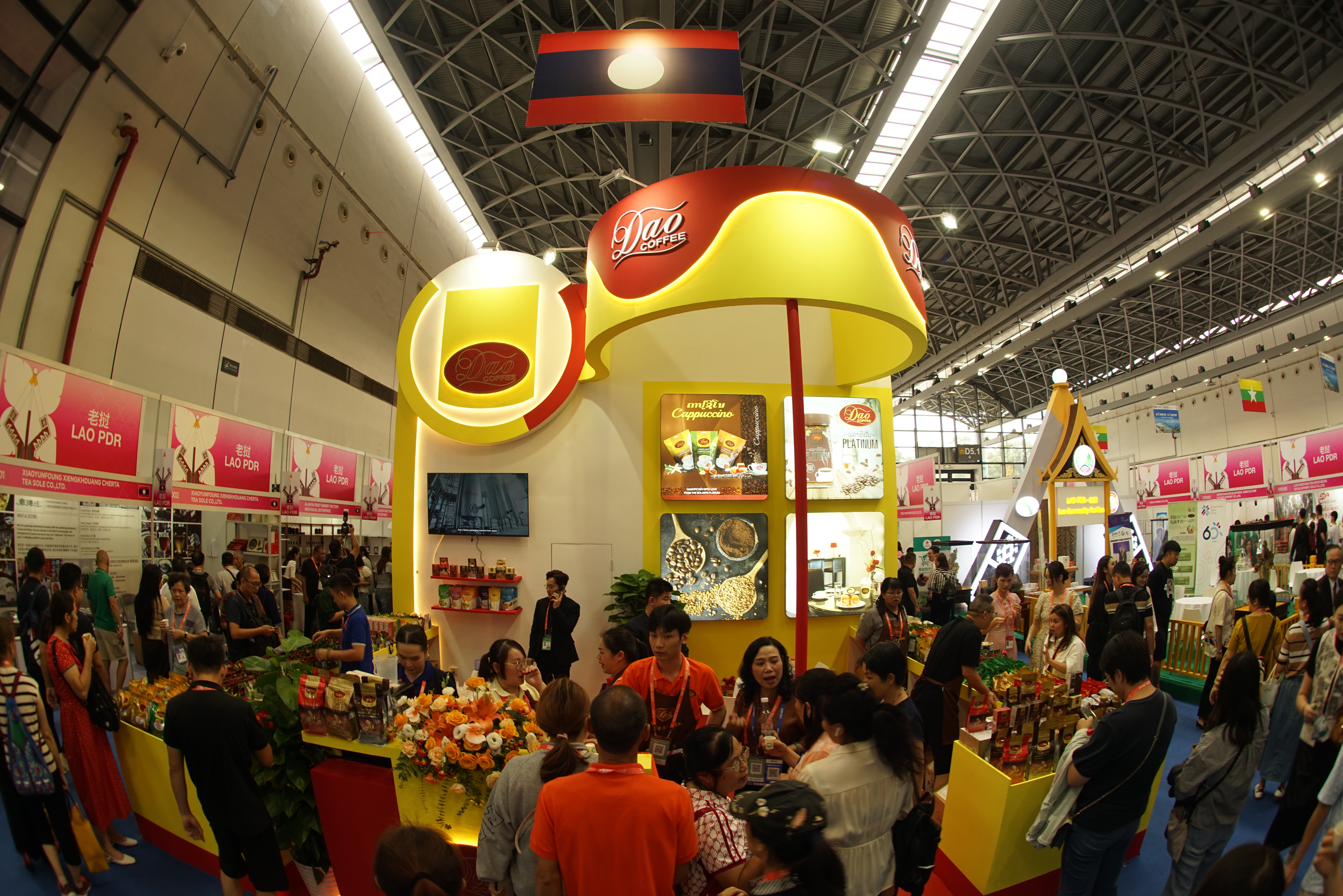 中外宾客在南宁国际会展中心逛展,品尝东盟特色食品。梁凯昌 摄