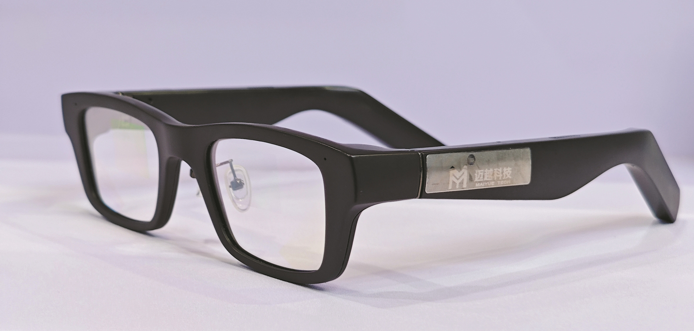 据迈越科技执行董事、总裁邓彩蝶介绍,这一款AI眼镜,可用于报告讲话的提词、多语种的语言翻译以及与AI大模型的互动交流,“目前该产品和另外一款产品,叫超智能便携翻译终端,俗称翻译卡片,一起定价是3999元。”