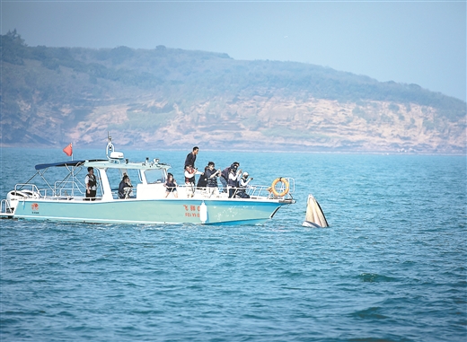 北海涠洲岛海域是全国唯一能够近岸观鲸的海域,一头布氏鲸突然出现在观鲸船的前方。 (视觉中国供图)