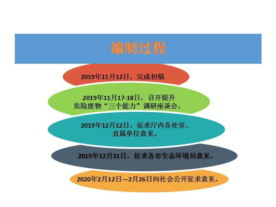 2019年11月12日,完成《广西壮族自治区生态环境厅落实危险废物环境监管能力、利用处置能力和环境风险防范能力提升的工作措施》初稿(以下简称《工作措施》)。2019年11月17—18日,生态环境部在济南市召开提升危险废物“三个能力”调研座谈会,会后对《工作措施》修改完善。
