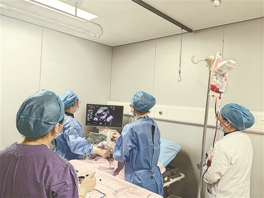 柳州市妇幼保健院围产保健科团队为产妇实施宫内治疗。