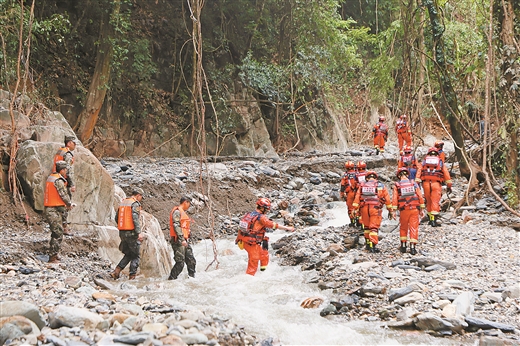 同时,在指挥部的统一调度下,救援力量划分为现场核心及下游沿河共4个小组,每组由专业救援队、党员干部和熟悉情况的村民等组成,对约25公里重点河岸沿线开展拉网式搜救。