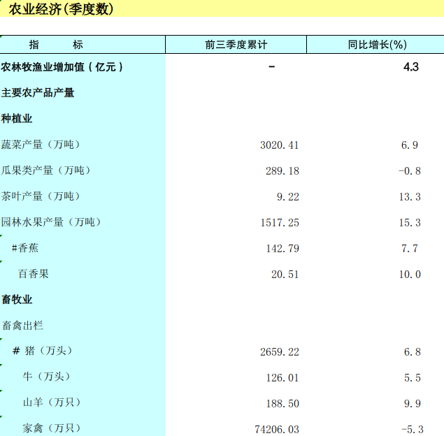 2022年前三季度广西农业经济(季度数)