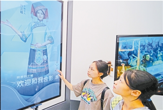 市民在与虚拟数字人“刘三姐”互动。周军 摄