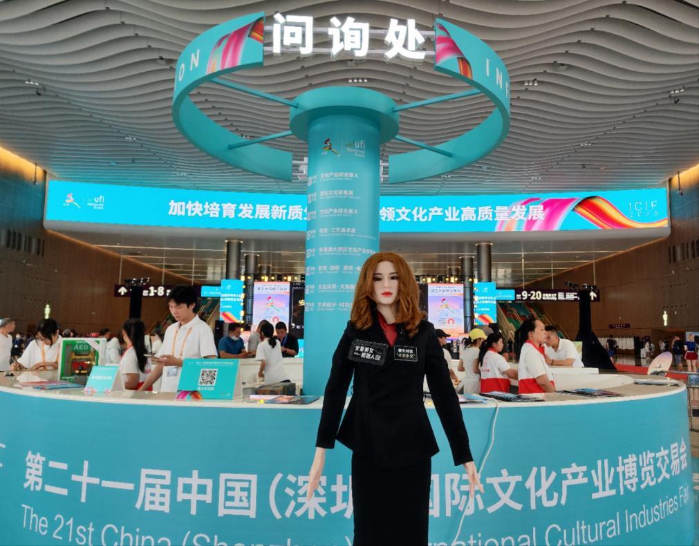 图为第二十一届文博会现场问询处的人形机器人。新华社记者 邓瑞璇 摄