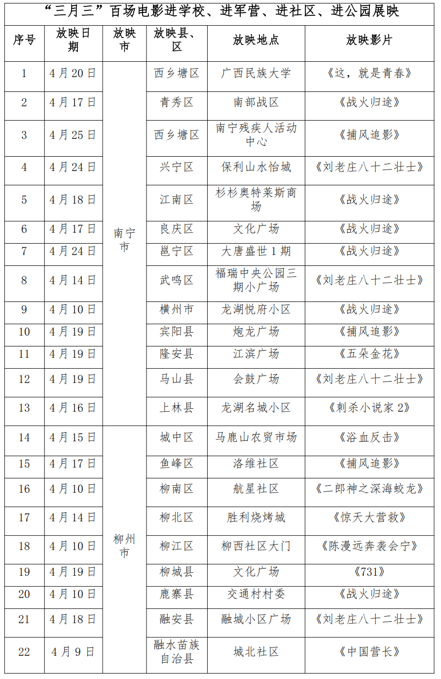 (三)“三月三”百场电影进学校、进军营、进社区、进公园展映