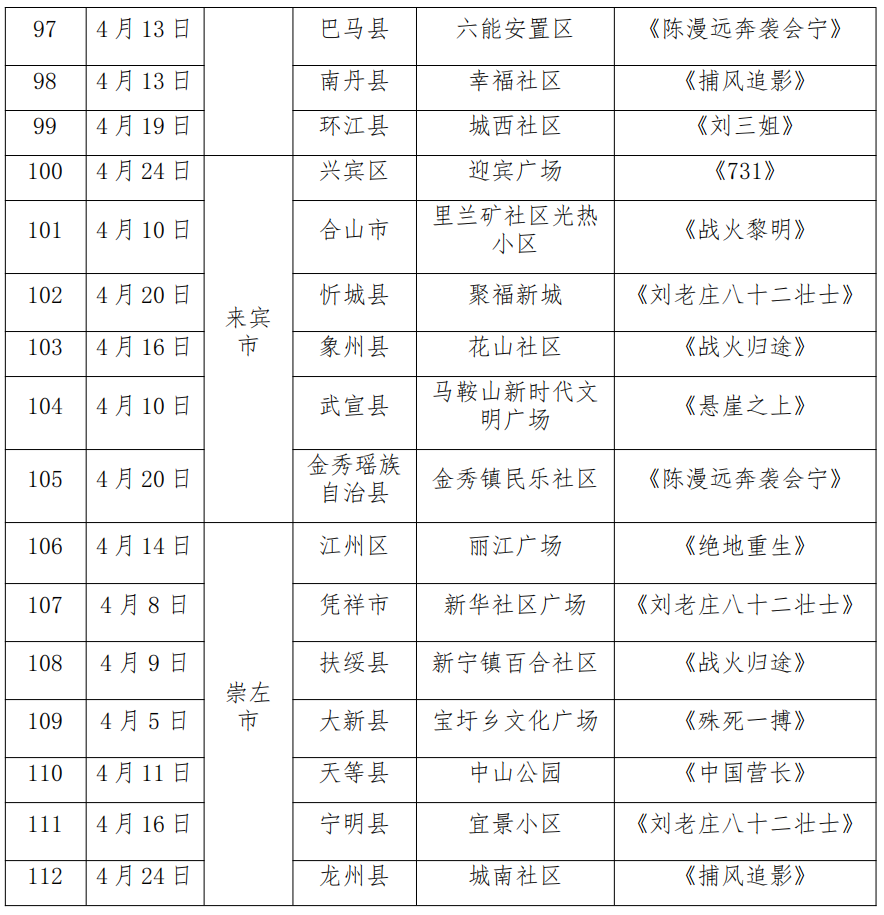 参与方式:通过“八桂文化圈”小程序了解本地社区及农村地区公益电影放映安排,自行前往观影。