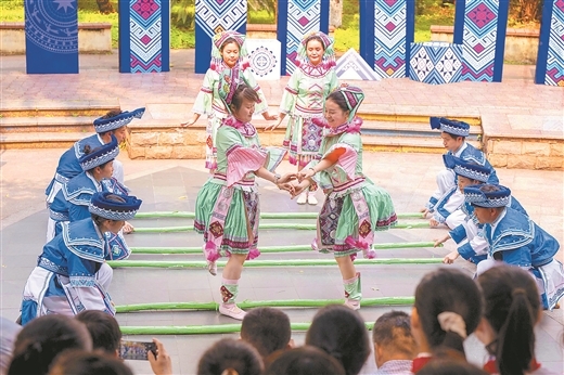 4月9日,梧州市万秀区蓝天社区举办“浓情多彩三月三,同心共筑石榴梦”主题活动,以竹竿舞、传统美食分享、文艺表演等丰富形式,喜迎广西三月三到来。何华文 摄