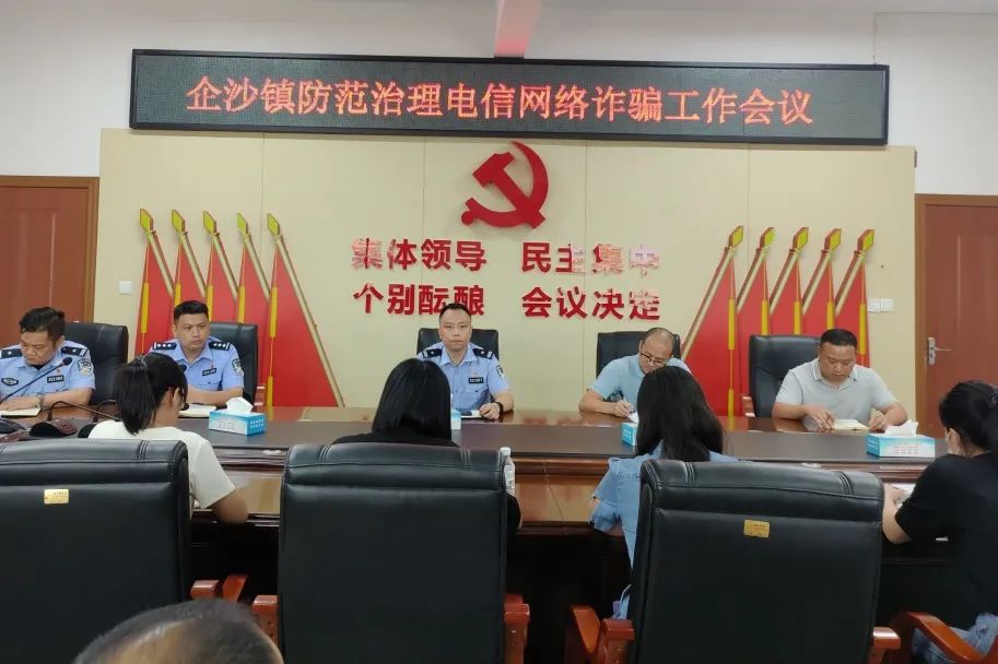 民警推动企沙镇人民政府召开防电信网络诈骗推进会,通过上渔船、进企业、走社区的警情通报形式,结合近期辖区被诈骗实例,从诈骗案件的类型、特点、受骗的原因以及防范注意事项等对反诈骗进行深入宣传,加深群众对诈骗手段的了解,切实提高防范意识。