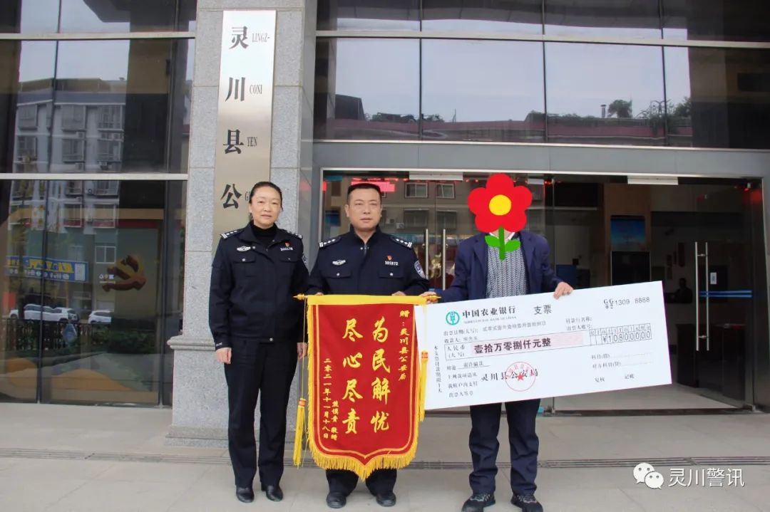 11月19日,熊某带着一面“为民解忧,尽心尽责”的锦旗专程来到桂林市公安局灵川县局,感谢灵川公安全力以赴为其追回被骗的108000元,时隔大半年终得以返还,熊某激动不已。