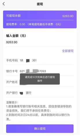 当发现无法提现时,对面的“客服”会告诉你:你的账户存在异常,已被冻结,需要再充值一笔钱才能解冻。这个时候,如果你信以为真,那对方在拿到钱之后就会立马切断与你的联系,并且转移走你的资金。
