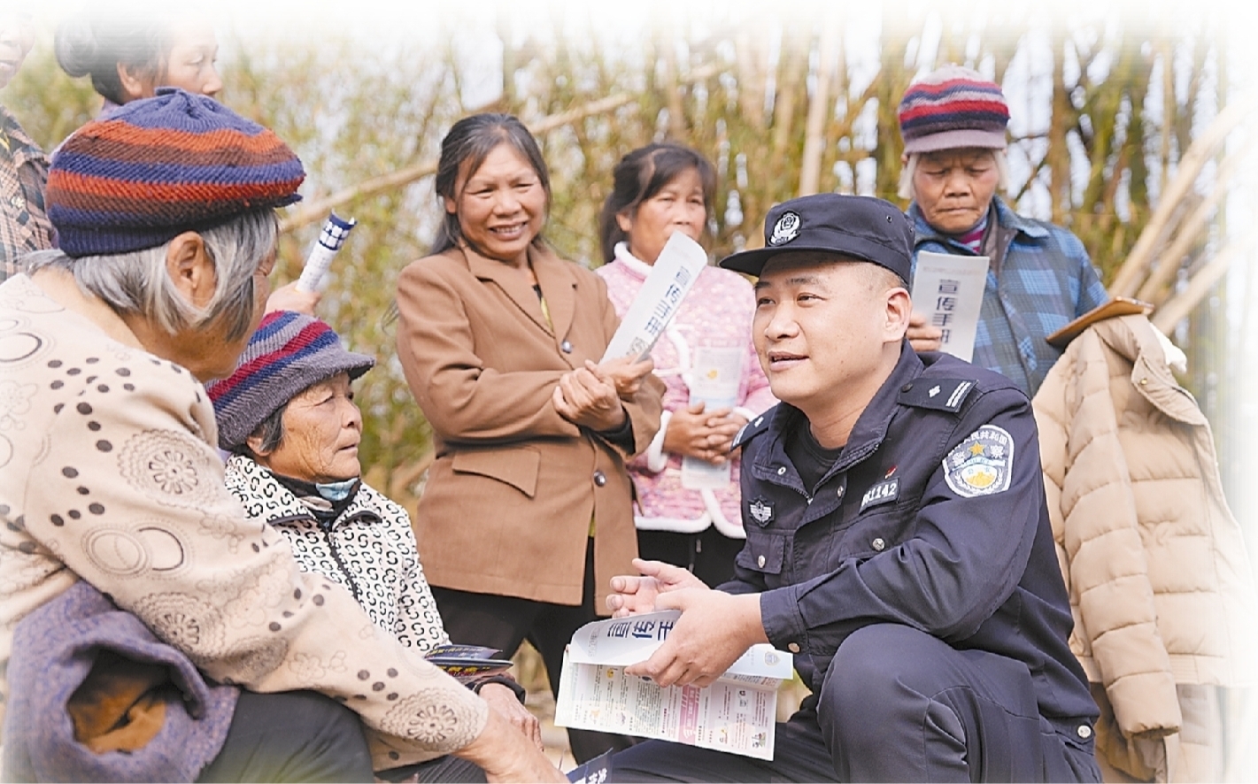 上思县公安局民警向辖区群众宣传反诈知识。 许玉荣 摄
