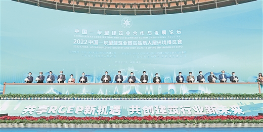 2022年11月25日,以“共享RCEP新机遇 共创建筑行业新未来”为主题的中国—东盟建筑业合作与发展论坛、2022中国—东盟建筑业暨高品质人居环境博览会在南宁开幕。