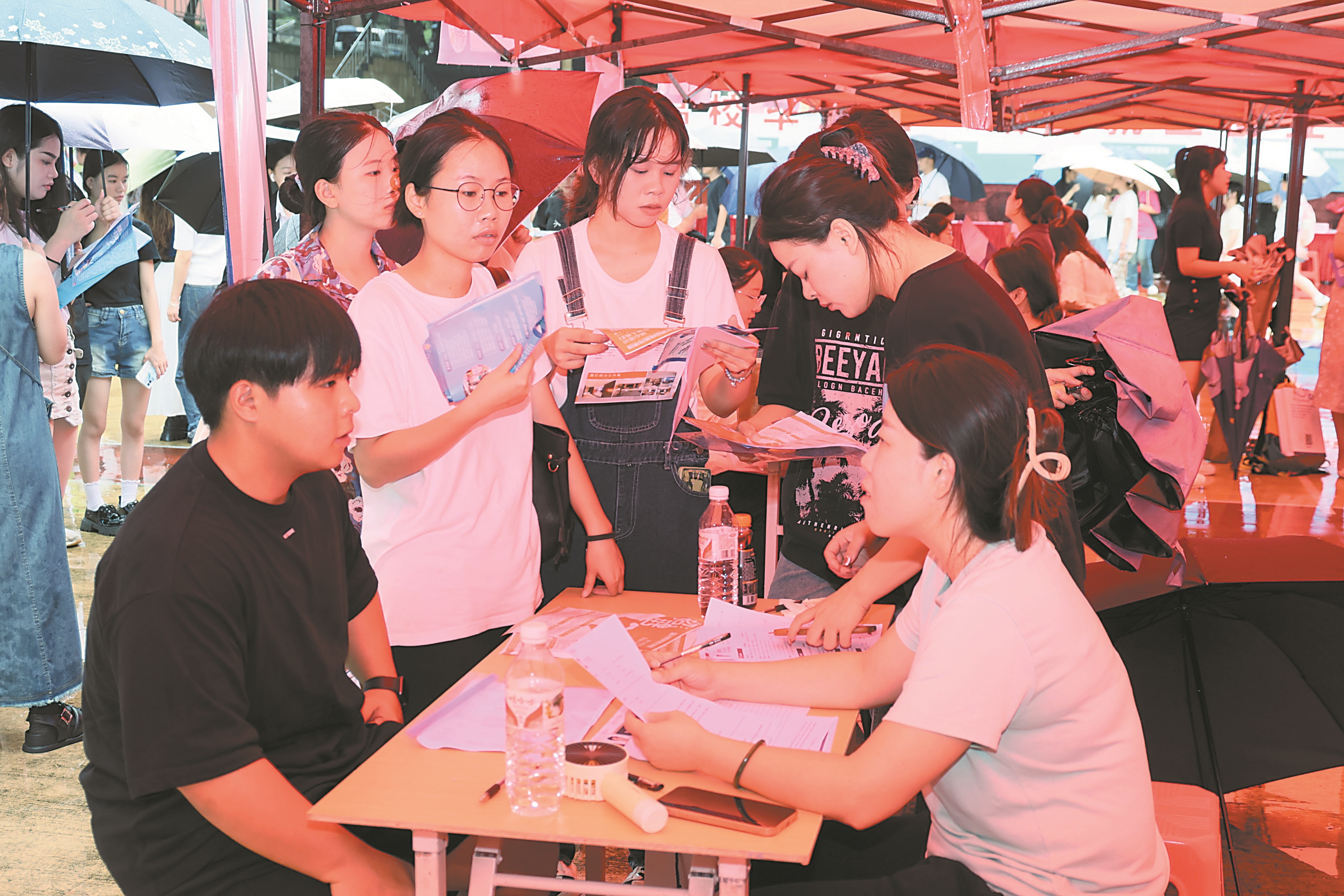 招聘会上,大学生与用人单位洽谈。 刘慧颖 摄