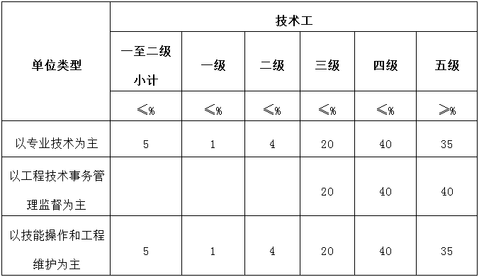 2.技术工岗位等级结构比例如下: