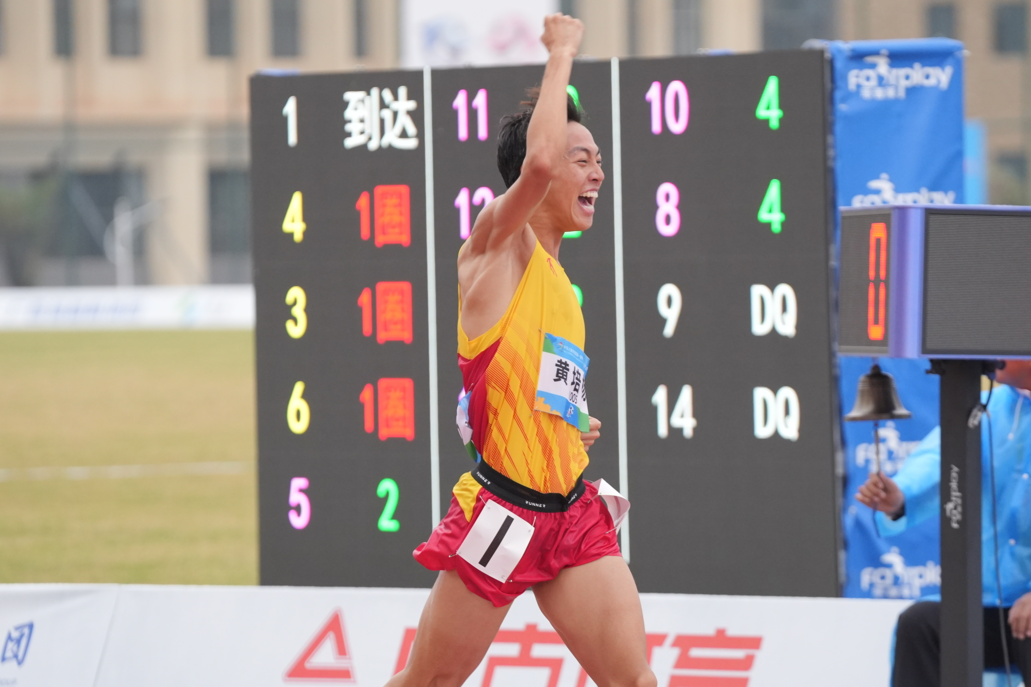 黄培杨冲过终点线。学青会组委会供图