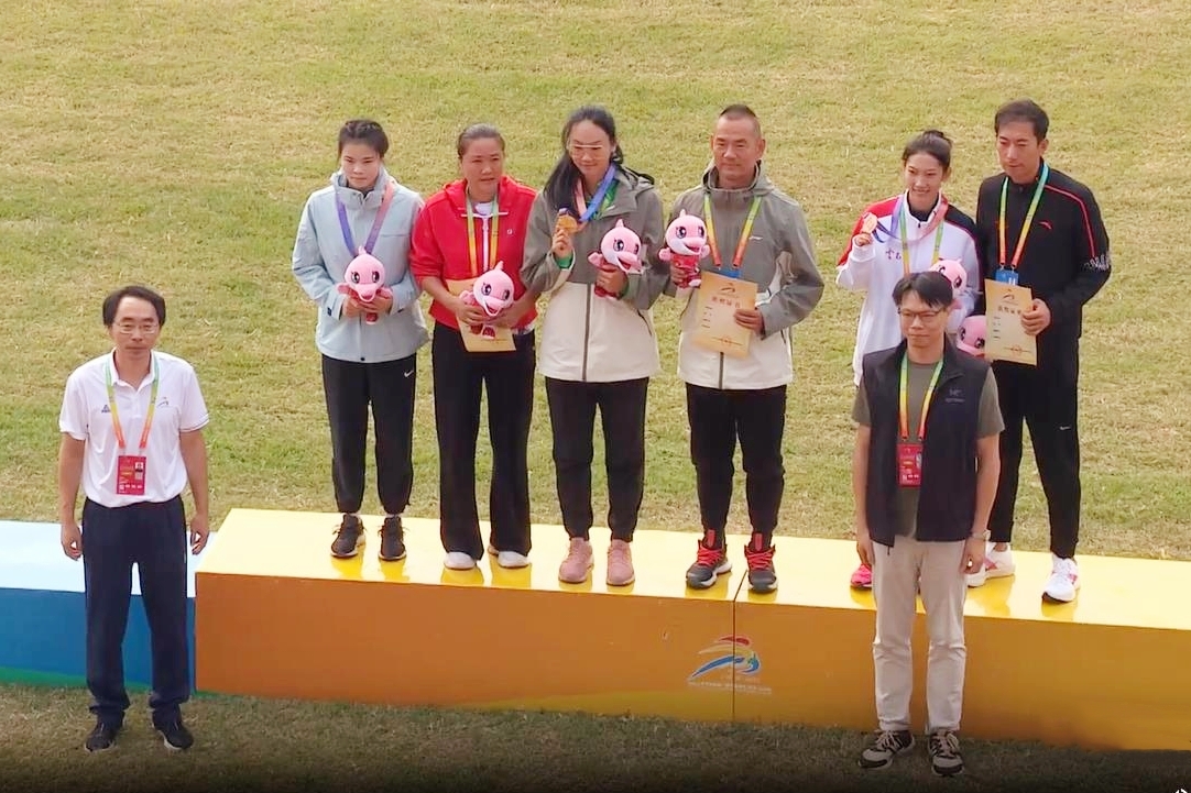 女子大学乙组跳远颁奖仪式。杨思悦 摄