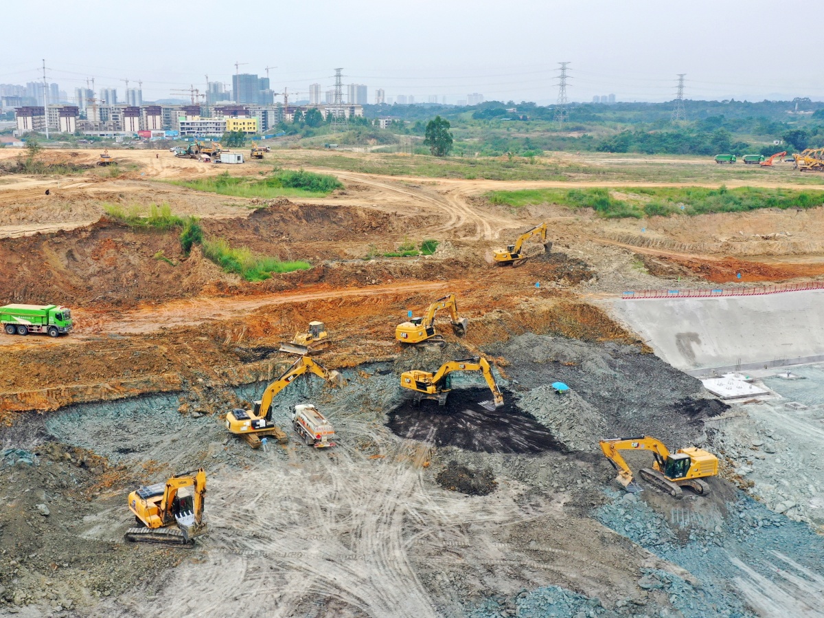 中建四局三塘体育训练比赛基地项目执行经理浦绍松介绍,在04—27地块建设中,土方出土阶段项目团队根据场地情况,实施分区、分层开挖,合理穿插施工工序,保障了施工时间。