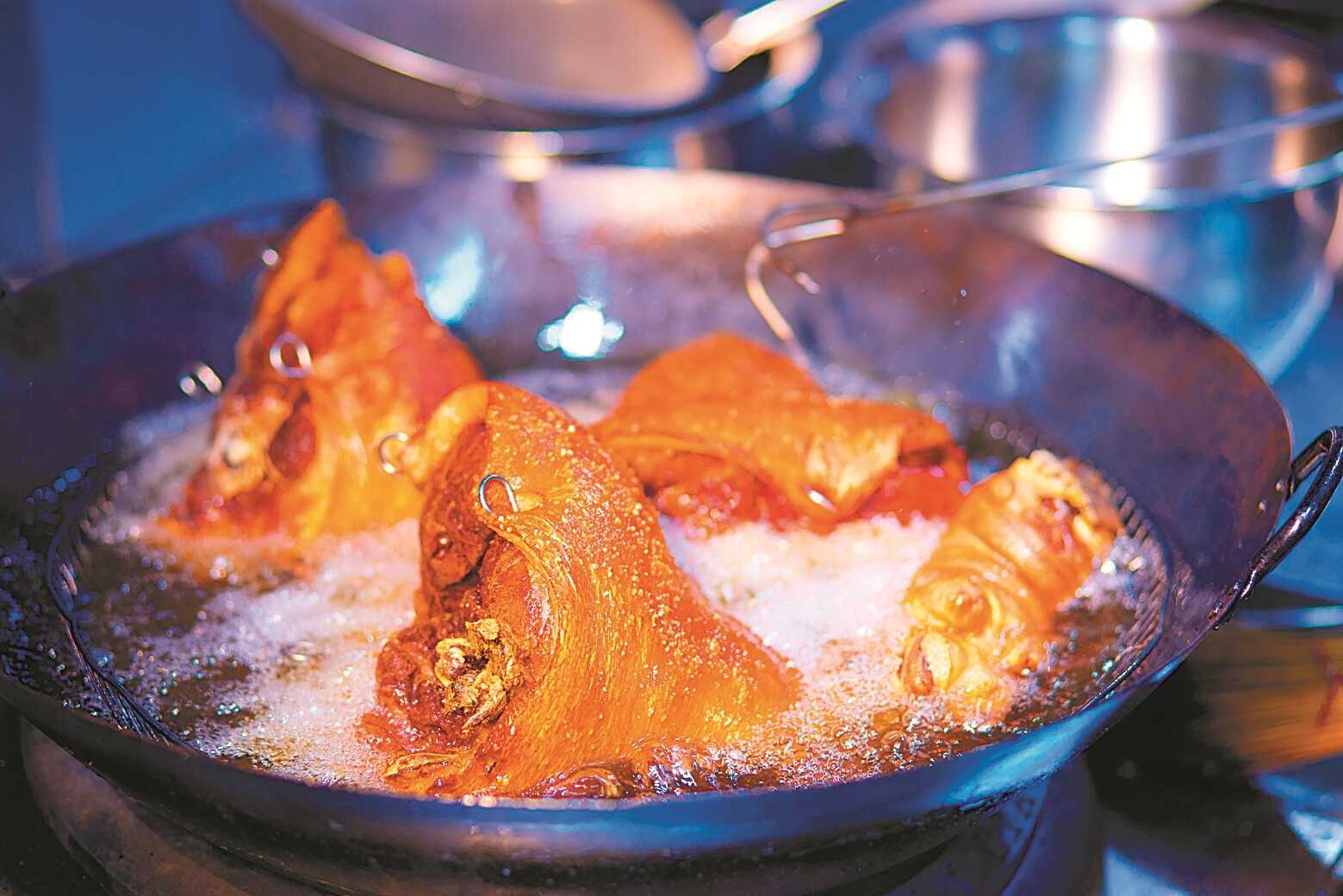 厨师在炸猪脚。均为陆敏 黄开碧 摄