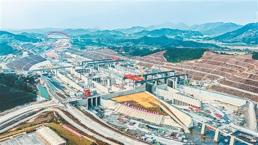 2月19日,建设中的平陆运河马道枢纽,世界级内河省水船闸主体结构已全面完工。(平陆运河集团供图)