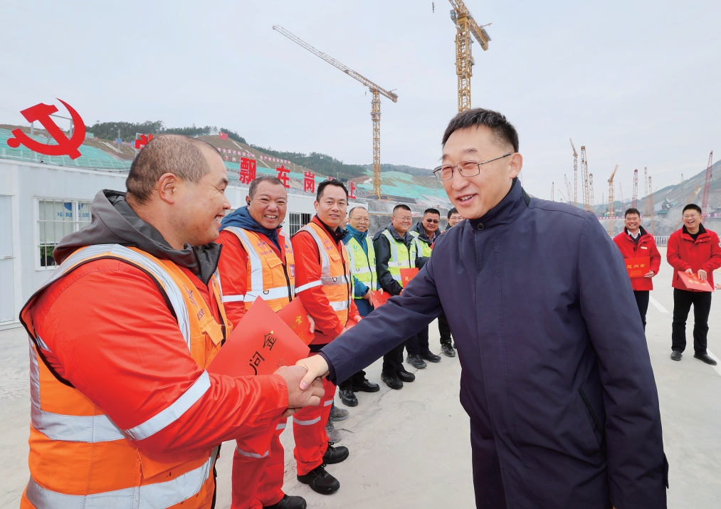 2月9日,自治区党委书记刘宁到钦州市平陆运河项目建设现场,看望慰问节假日期间坚守岗位的一线建设者。黄克 摄